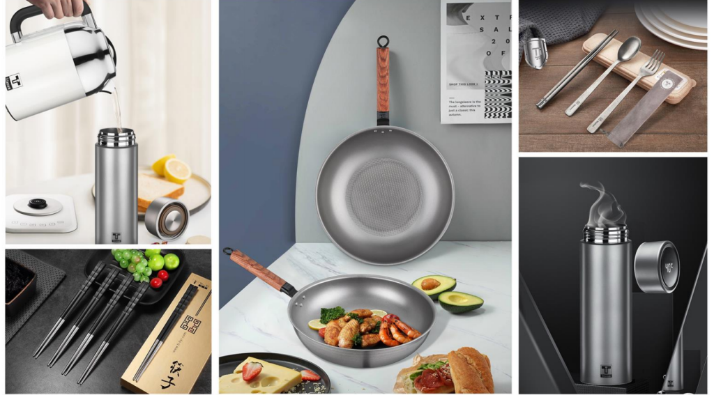 自主品牌,直面消費(fèi)者。2019年,鼎興公司啟動(dòng)自主品牌“鈦藝”的運(yùn)營(yíng),專注于純鈦餐廚具、水具等健康生活用品。通過電商平臺(tái)、直播帶貨、線下展會(huì)等全渠道營(yíng)銷,讓“航天級(jí)材料”制成的純鈦炒鍋、湯鍋、水杯等產(chǎn)品,直接觸達(dá)國內(nèi)追求品質(zhì)與健康的消費(fèi)者。
