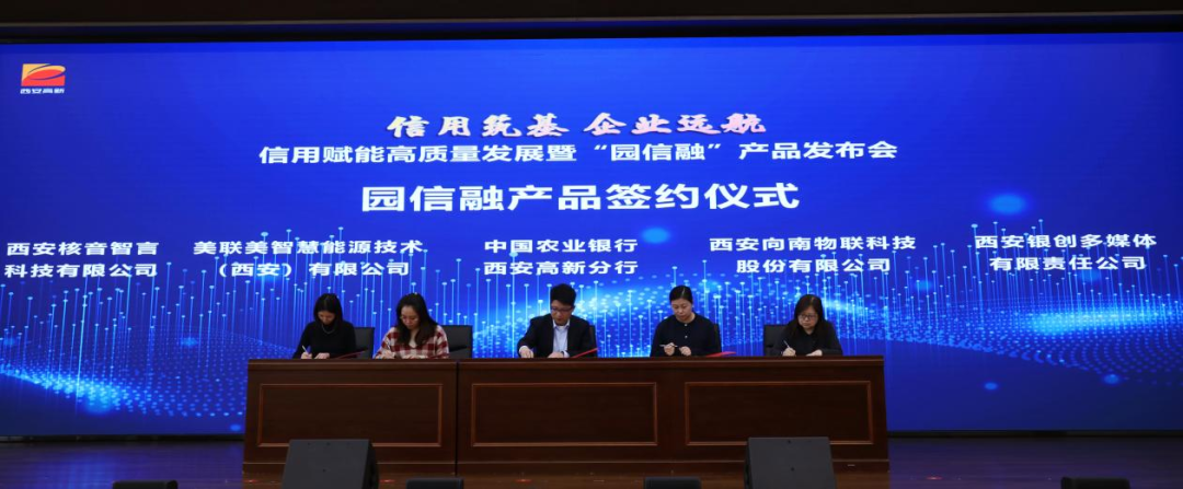 活動(dòng)現(xiàn)場(chǎng)舉行了“西安高新區(qū)數(shù)字信用與金融創(chuàng)新聯(lián)合實(shí)驗(yàn)室”揭牌儀式;發(fā)布了“園信融”高新定制融資服務(wù)產(chǎn)品,中國(guó)農(nóng)業(yè)銀行西安高新分行與園信融產(chǎn)品落地企業(yè)、意向企業(yè)進(jìn)行簽約。