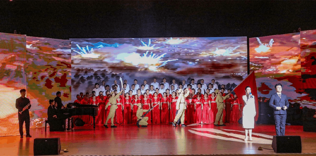 除了傳統(tǒng)的合唱形式,許多節(jié)目在藝術(shù)融合上大膽創(chuàng)新?!渡類?ài)的》《早安,陽(yáng)光》《一路生花》等節(jié)目,巧妙融入了朗誦、舞蹈等元素,使情感表達(dá)更為立體;《星河閃耀》加入雄渾鼓點(diǎn),《歲月榮光》配以悠揚(yáng)樂(lè)器,豐富了音樂(lè)層次與感染力;《我相信我的未來(lái)不是夢(mèng)》則在激昂旋律中融入現(xiàn)場(chǎng)揮毫,將歌聲與書(shū)法藝術(shù)相結(jié)合,生動(dòng)詮釋了奮進(jìn)新征程的壯志豪情。