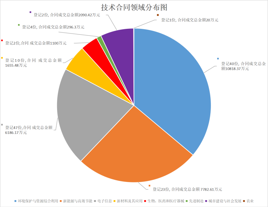 重點領(lǐng)域表現(xiàn)亮眼。環(huán)保與資源綜合利用領(lǐng)域登記40份,成交額1.08億元,占據(jù)主導(dǎo)地位;新能源與高效節(jié)能領(lǐng)域登記23份,成交額7782.61萬元,表現(xiàn)突出;電子信息領(lǐng)域登記47份,數(shù)量上居首,成交額6186.17萬元,三大領(lǐng)域合計貢獻總成交額的82.2%。同時,航空航天、生物醫(yī)藥等領(lǐng)域均有突破,體現(xiàn)科技創(chuàng)新的多元化發(fā)展態(tài)勢。