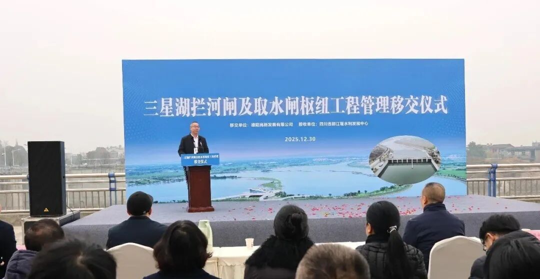 2025年12月30日,三星湖攔河閘及取水閘樞紐工程管理移交儀式在德陽高新區(qū)水系綜合整治項(xiàng)目2號(hào)閘樞紐工程現(xiàn)場(chǎng)隆重舉行。四川省都江堰水利發(fā)展中心、德陽高新區(qū)管委會(huì)、德陽高新發(fā)展有限公司、中鐵城建集團(tuán)等單位代表出席儀式,共同見證這一民生工程從建設(shè)到運(yùn)營(yíng)的重要節(jié)點(diǎn)。