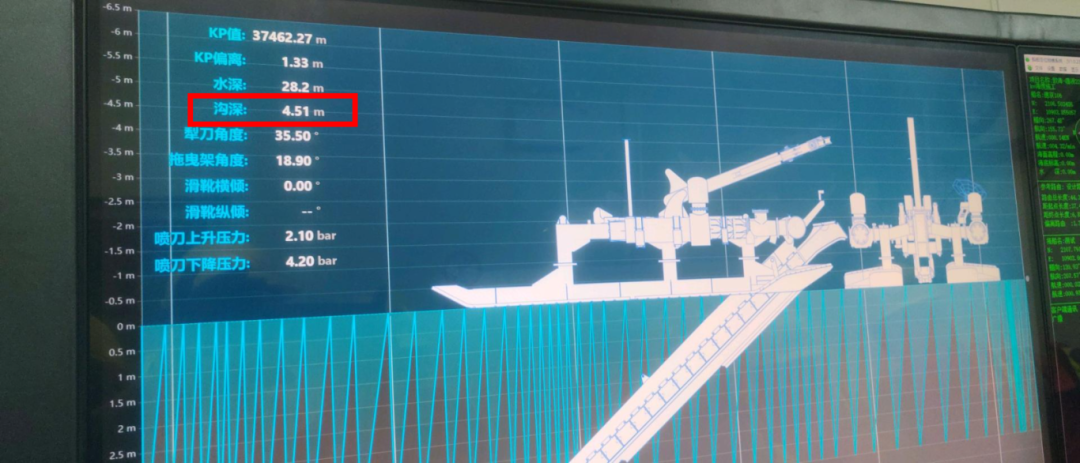 在過去一年,深海智人“金牛座”履帶自行式管纜埋設機器人,以及多臺“御夫座”系列管纜埋設機器人全部實現(xiàn)了“首臺即交付、交付即應用”并圓滿完成所有施工任務。本項目共計228個小時的連續(xù)無中斷施工中,“御夫座”機器人表現(xiàn)出卓越的可靠性與適應性,創(chuàng)下施工速度、埋設深度、工程質(zhì)量與能耗控制4項行業(yè)新紀錄。面對北部灣復雜海況,在航道段中,單次埋深達到4.6米,最終實現(xiàn)埋深6米;全路由段平均埋深穩(wěn)定保持在3.5米以上。