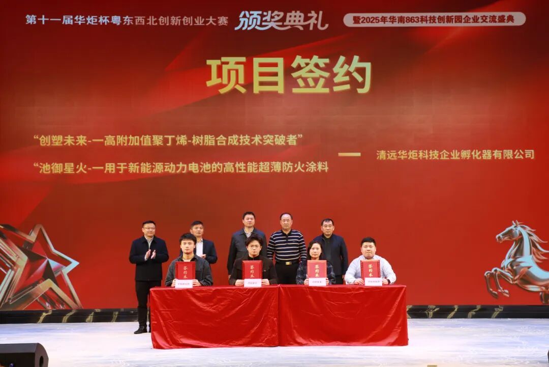 1月4日晚,第十一屆“華炬杯”粵東西北創(chuàng)新創(chuàng)業(yè)大賽頒獎典禮暨2025年華南863科技創(chuàng)新園企業(yè)交流盛典活動在清遠(yuǎn)華南863科技創(chuàng)新園舉行。本屆大賽共30個(gè)項(xiàng)目獲獎,并篩選6個(gè)項(xiàng)目進(jìn)入省賽行業(yè)賽決賽。