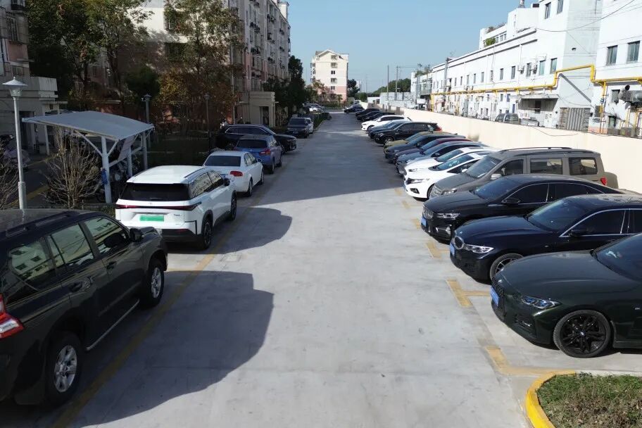 項目選址小區(qū)北側(cè)3處閑置空地,總面積超7900平方米。項目建設(shè)方案由村兩委牽頭,聯(lián)動昆山高新區(qū)綜合行政執(zhí)法局、物業(yè)及居民代表召開多次協(xié)商會議,在充分吸納民意后確定。新建停車場進行了科學(xué)規(guī)劃,對原有通道進行了“截彎取直”,動線設(shè)計規(guī)范合理,通行安全順暢。2025年9月底,3處停車場如期竣工并正式投用,新增標(biāo)準(zhǔn)機動車位243個,同步配套充電樁70個、非機動車停車線400余米及非機動車充電點位18處,有效緩解了小區(qū)“一位難求”的停車?yán)Ь场?/p>