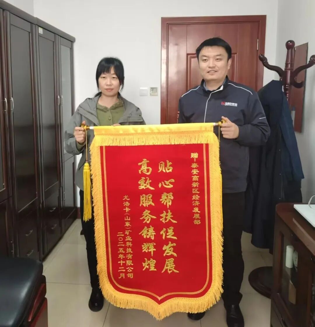 近日,泰安高新區(qū)經(jīng)濟(jì)發(fā)展部收到了尤洛卡(山東)礦業(yè)科技有限公司送來的感謝信與錦旗,錦旗上“貼心幫扶促發(fā)展高效服務(wù)鑄輝煌”的字樣,是企業(yè)對該部門精準(zhǔn)服務(wù)、主動作為的肯定與贊譽(yù)。