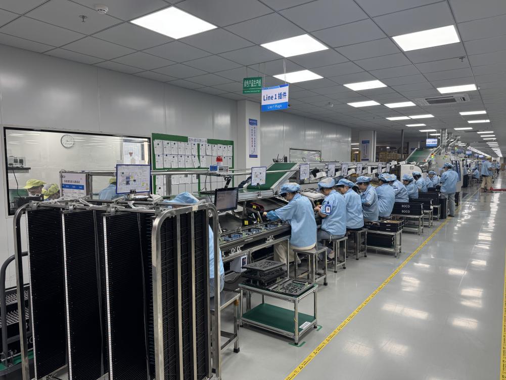 走進(jìn)恒溫恒濕的萬級(jí)無塵車間,機(jī)械臂與工人協(xié)同作業(yè),全自動(dòng)貼片機(jī)以每分鐘超250次的速度精準(zhǔn)貼裝。通過“立體化智能布局”,四層廠房實(shí)現(xiàn)物料空中流轉(zhuǎn),人均產(chǎn)出較傳統(tǒng)模式提升2.5倍。鉑科電子生產(chǎn)總監(jiān)邢軍介紹說:“生產(chǎn)線三班倒趕工,仍難以滿足激增的訂單需求。”