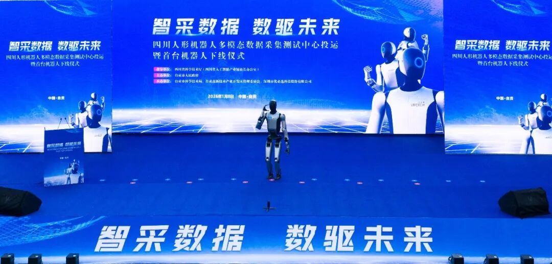 1月8日,四川人形機(jī)器人多模態(tài)數(shù)據(jù)采集測試中心投運(yùn)暨首臺機(jī)器人下線儀式在自貢機(jī)器人產(chǎn)業(yè)園舉行。作為四川省首個(gè)專業(yè)化、多模態(tài)人形機(jī)器人數(shù)據(jù)采集測試平臺,該中心的正式投運(yùn)與首臺機(jī)器人的成功下線,標(biāo)志著自貢市在貫徹落實(shí)四川省委、省政府人工智能“一號創(chuàng)新工程”決策部署上取得關(guān)鍵性突破,為本地人工智能產(chǎn)業(yè)“建圈強(qiáng)鏈”和高質(zhì)量發(fā)展注入了新的強(qiáng)勁動力。