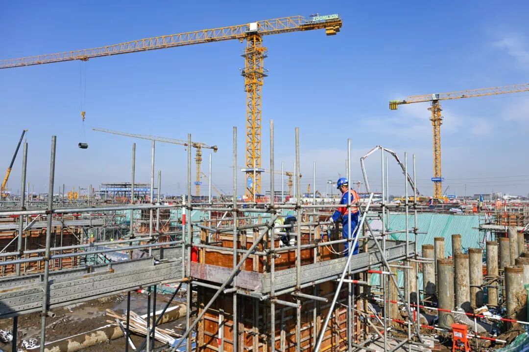 當(dāng)前主廠房區(qū)有1300多名建設(shè)者奮戰(zhàn)一線,配套的公輔區(qū)也在同步推進(jìn)施工,未來(lái)將為生產(chǎn)運(yùn)行提供穩(wěn)定的能源介質(zhì)。