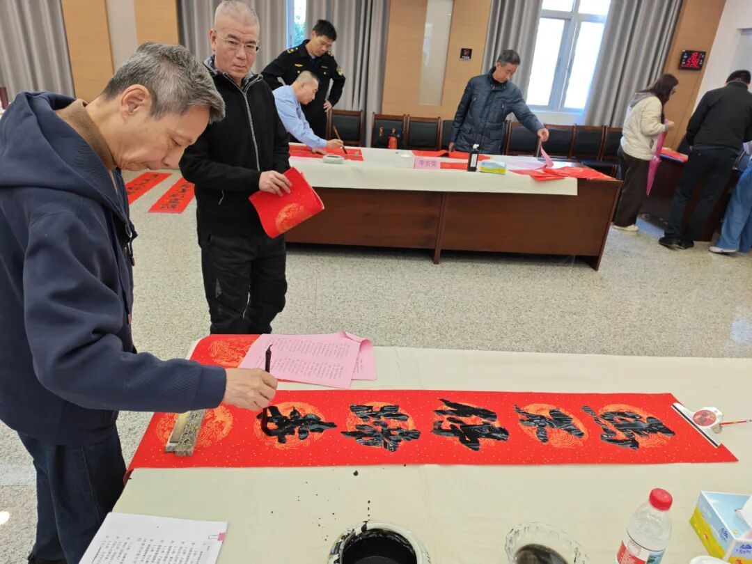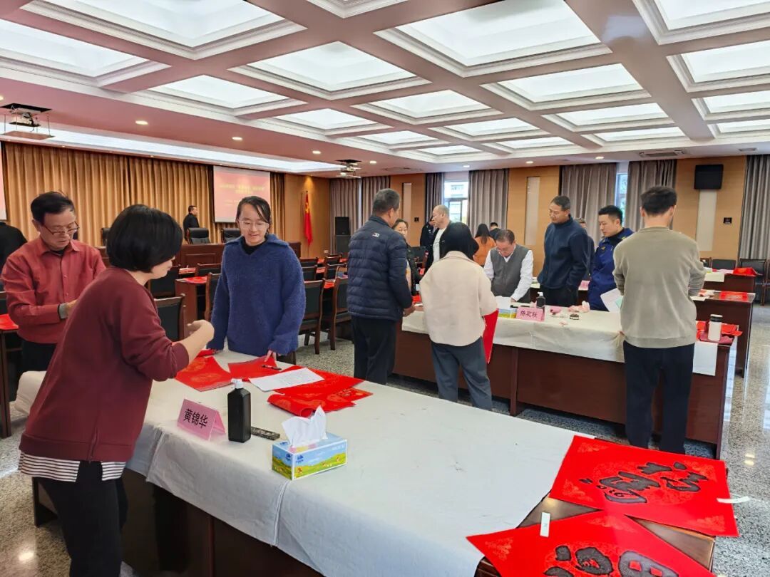 現(xiàn)場干部職工或凝神駐足,欣賞精湛筆墨技藝、品評春聯(lián)美好寓意;或親手接過題寫的春聯(lián)與“?!弊窒ば氖蘸?;或圍聚桌前挑選心儀作品,暢談新年愿景與期盼,氣氛熱烈而溫馨。