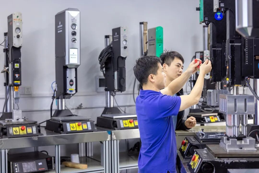走進艾默生必能信超聲(上海)有限公司東莞分公司的焊接實驗室,同樣是一片熱火朝天的忙碌景象。設備調(diào)試、產(chǎn)品檢測……20余名首批返崗員工正開足馬力趕制節(jié)后訂單。