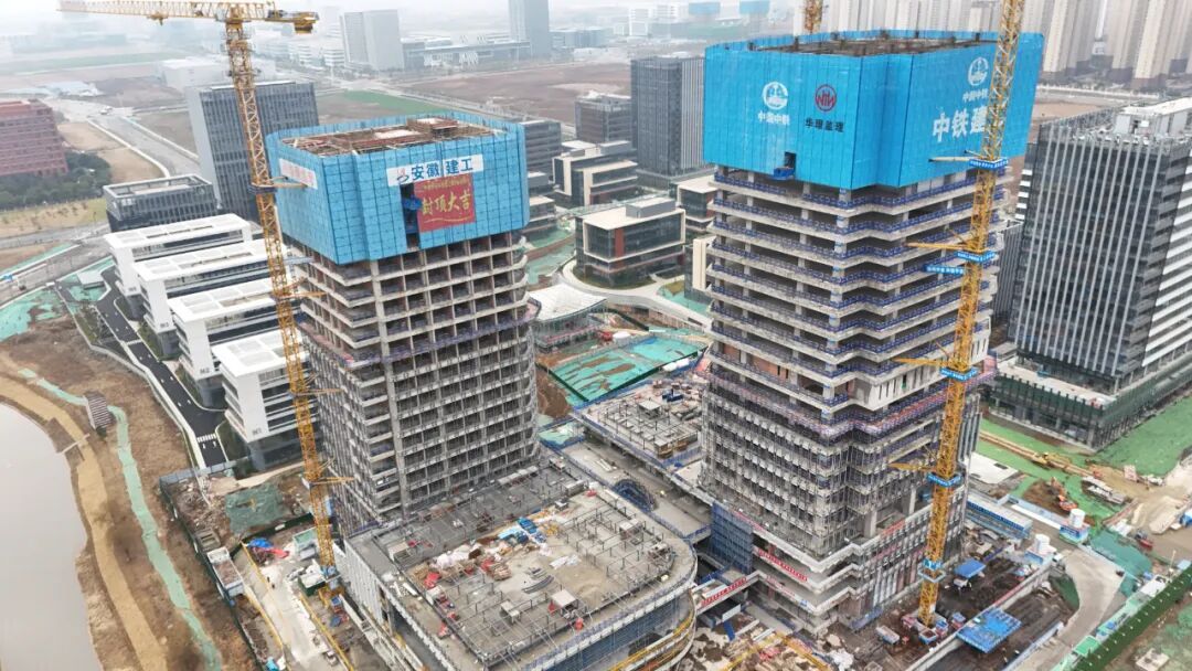 在中國科大科技商學(xué)院項(xiàng)目施工現(xiàn)場,1號樓外立面施工正緊鑼密鼓推進(jìn),2號樓已基本完工,工人們正細(xì)致地進(jìn)行室內(nèi)裝修裝飾收尾工作。