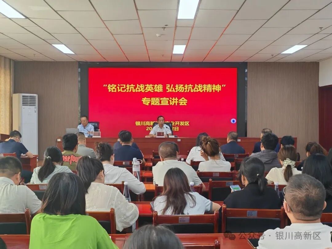 9月2日,銀川高新區(qū)邀請寧夏回族自治區(qū)黨委老干部局“塞上金秋”宣講團(tuán)骨干成員王軍同志開展“銘記抗戰(zhàn)英雄 弘揚抗戰(zhàn)精神”專題宣講,銀川高新區(qū)機(jī)關(guān)和企業(yè)黨員干部職工60余人參加。