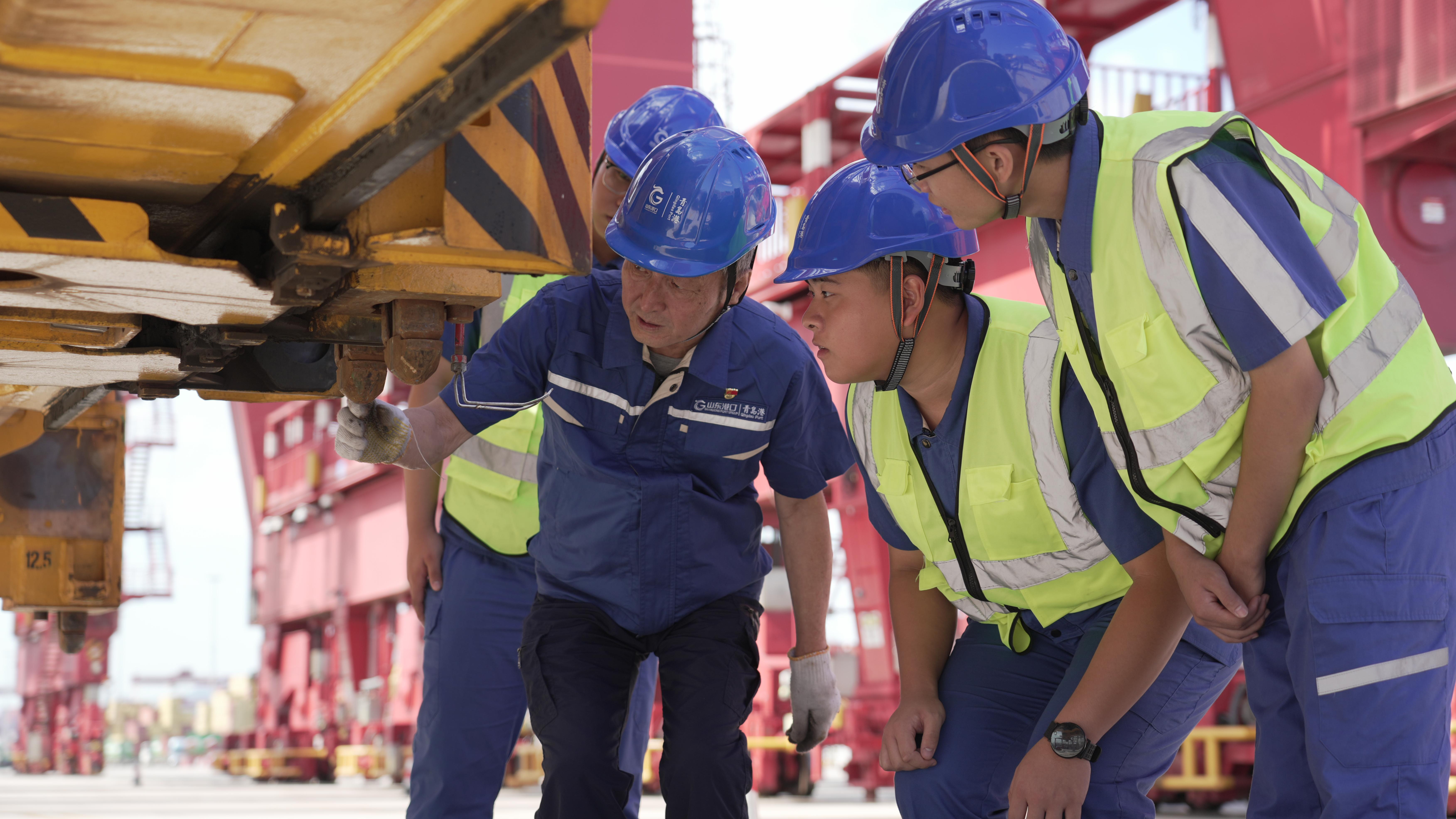 為了樹立碼頭工人的新形象,許振超還給大伙兒定下了“人人練技術(shù)、人人有絕活”的規(guī)矩。他不僅自己練就了“一鉤準(zhǔn)”“無聲響操作”等拿手絕活兒,更致力于團(tuán)隊建設(shè)和技藝傳承,先后培育了“王嘯飛燕”“劉洋神繩”等一大批港口工人品牌,激勵著一代又一代碼頭工人不斷挑戰(zhàn)極限。