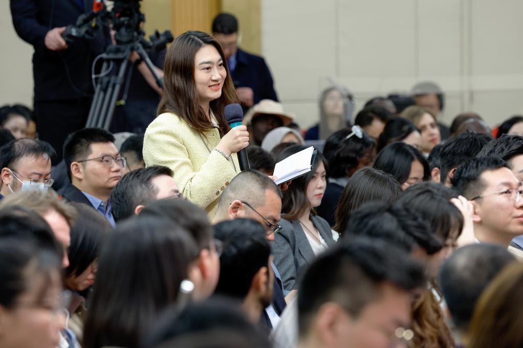 3月6日,十四屆全國人大三次會議在北京梅地亞中心新聞發(fā)布廳舉行記者會。國家發(fā)展和改革委員會主任鄭柵潔、財政部部長藍(lán)佛安、商務(wù)部部長王文濤、中國人民銀行行長潘功勝、中國證券監(jiān)督管理委員會主席吳清就發(fā)展改革、財政預(yù)算、商務(wù)、金融證券等相關(guān)問題回答中外記者提問。這是新華社記者在提問。