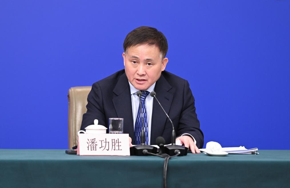 3月6日,十四屆全國人大三次會議在北京梅地亞中心新聞發(fā)布廳舉行記者會。國家發(fā)展和改革委員會主任鄭柵潔、財政部部長藍(lán)佛安、商務(wù)部部長王文濤、中國人民銀行行長潘功勝、中國證券監(jiān)督管理委員會主席吳清就發(fā)展改革、財政預(yù)算、商務(wù)、金融證券等相關(guān)問題回答中外記者提問。這是潘功勝在回答記者提問。