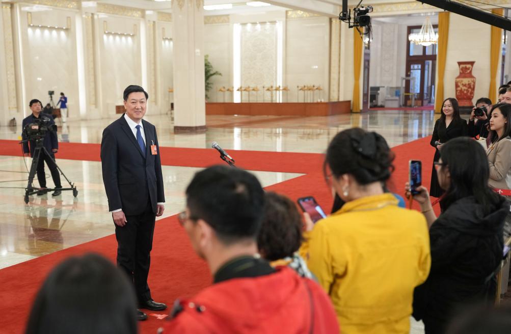 3月11日,第十四屆全國人民代表大會(huì)第三次會(huì)議第三場(chǎng)“部長通道”集中采訪活動(dòng)在北京人民大會(huì)堂舉行。這是文化和旅游部部長孫業(yè)禮接受媒體采訪。