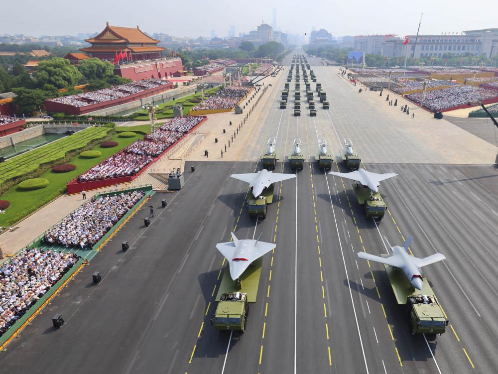 2025年9月3日,紀(jì)念中國人民抗日戰(zhàn)爭暨世界反法西斯戰(zhàn)爭勝利80周年大會在北京隆重舉行。這是裝備方隊接受檢閱。新華社記者 劉續(xù) 攝
